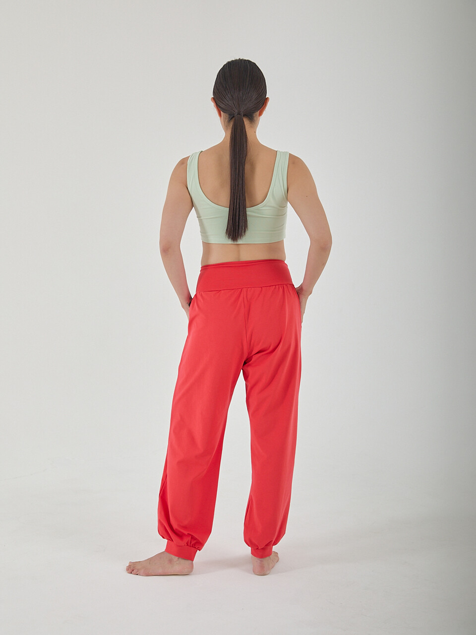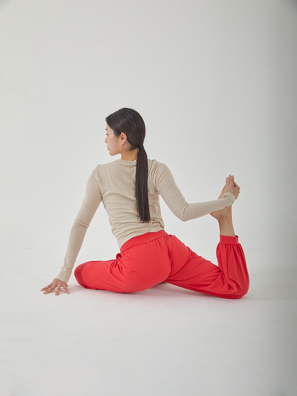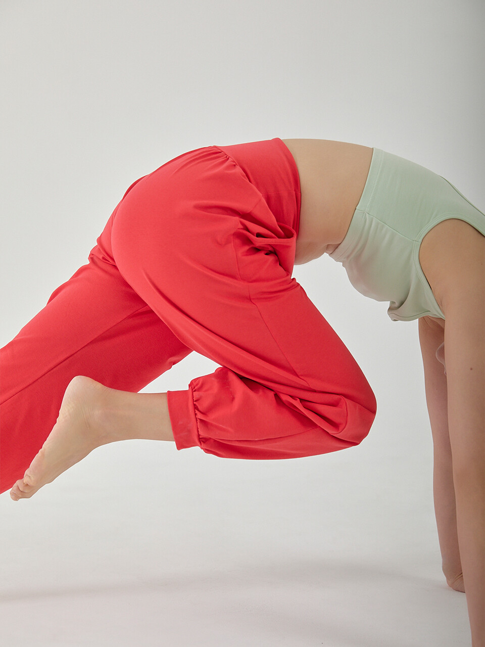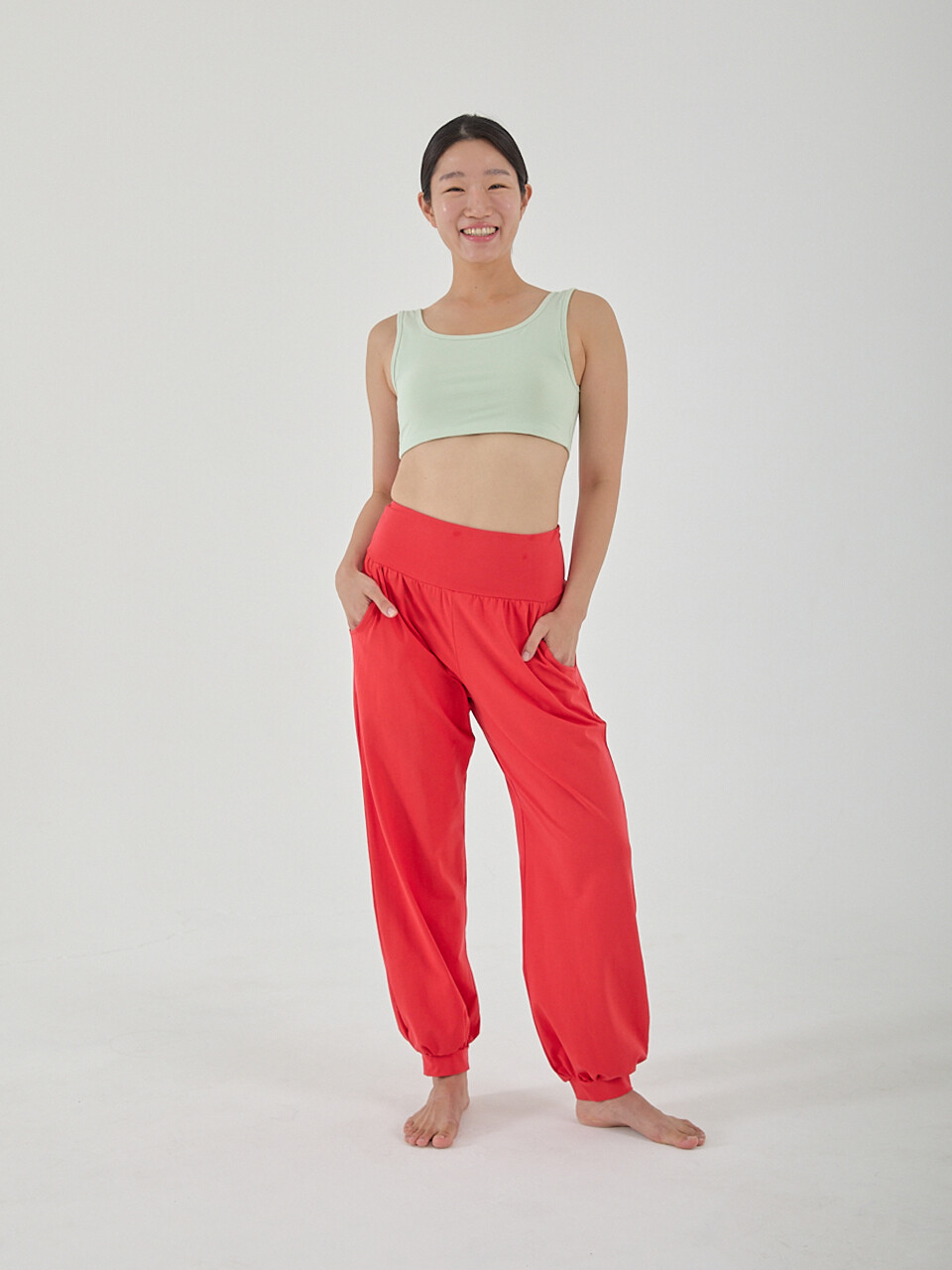 허리는 넓은 원단으로 복부를 편안히 감싸고, 가장 윗부분을 얇은 밴딩으로 마감해 착용 시 편안함에 내구성을 더했습니다. 발목은 제원단 시보리로 마감해 가볍고 압박이 없도록 디자인되었으며, 팬츠 옆선에는 넓은 주머니를 추가해 실용성을 높였습니다.