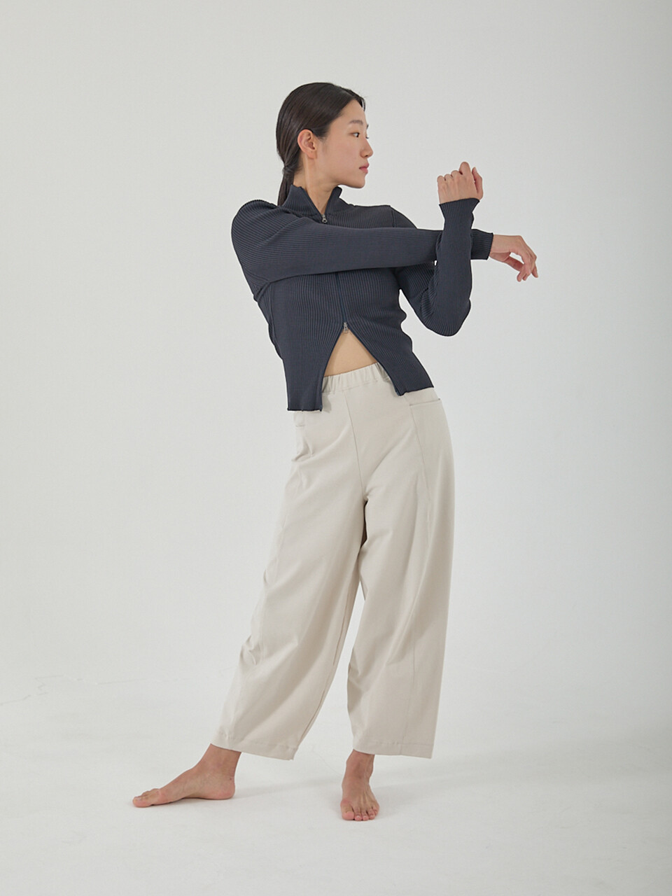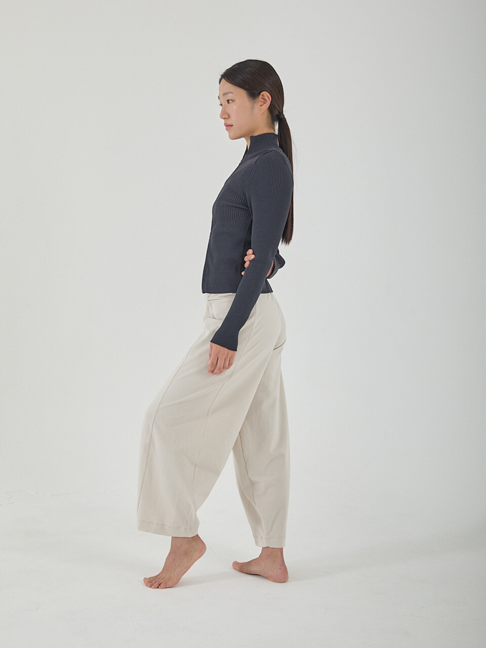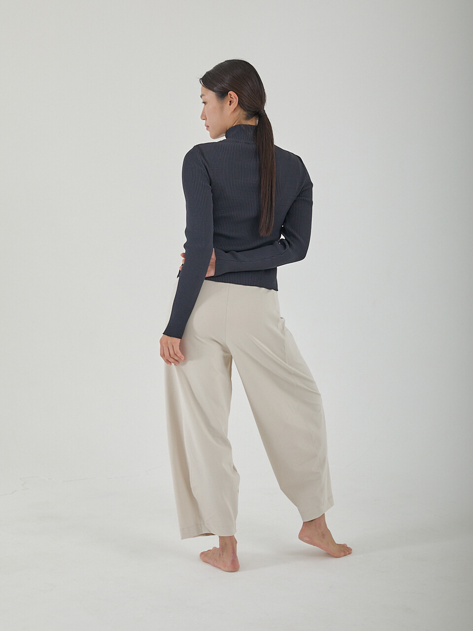 우묵한 그릇을 닮은 입체적인 실루엣의 팬츠입니다.