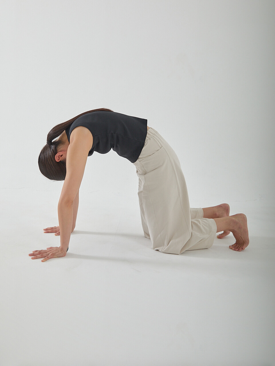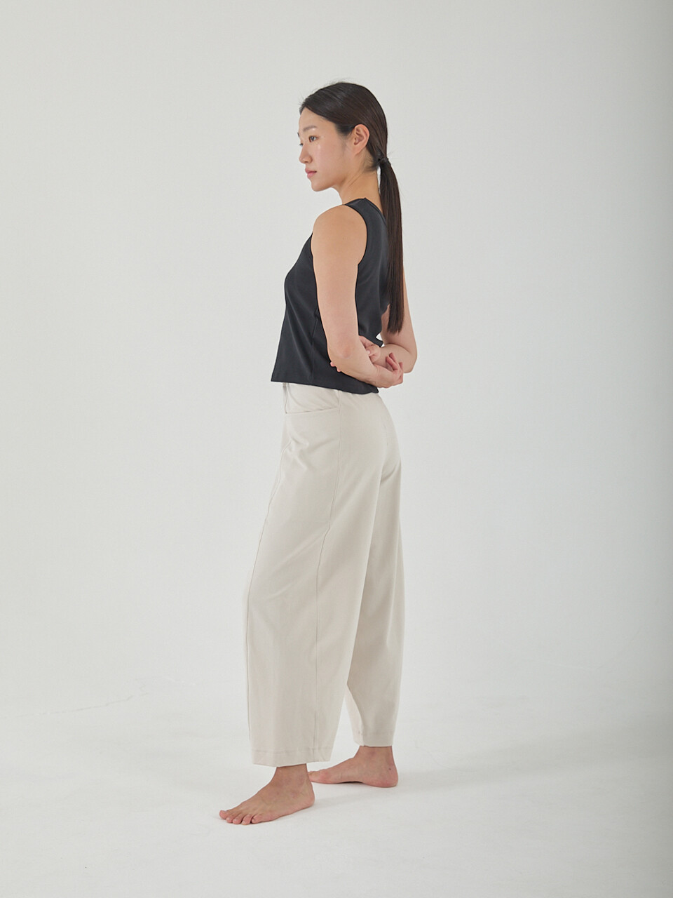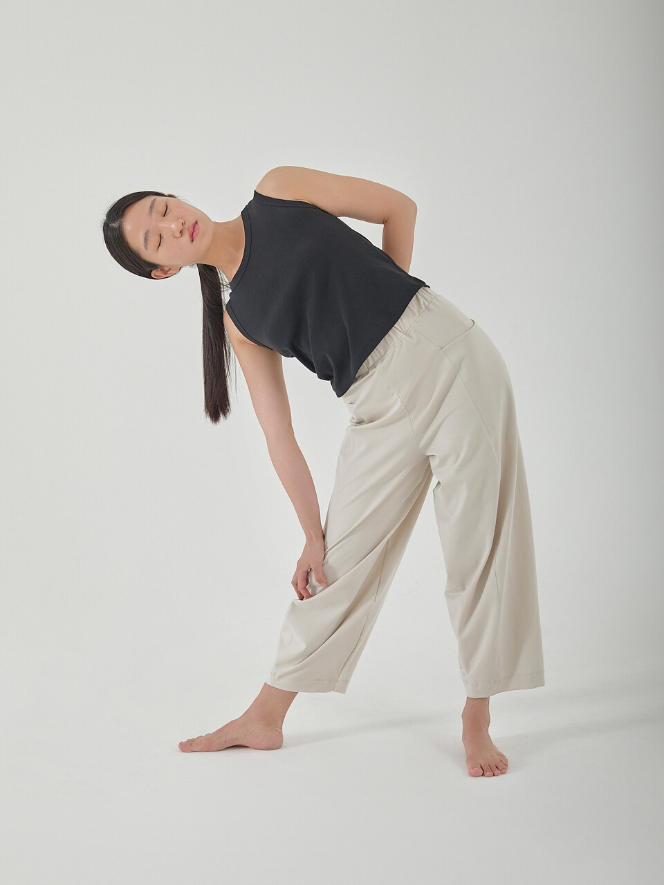 우묵한 그릇을 닮은 입체적인 실루엣의 팬츠입니다.