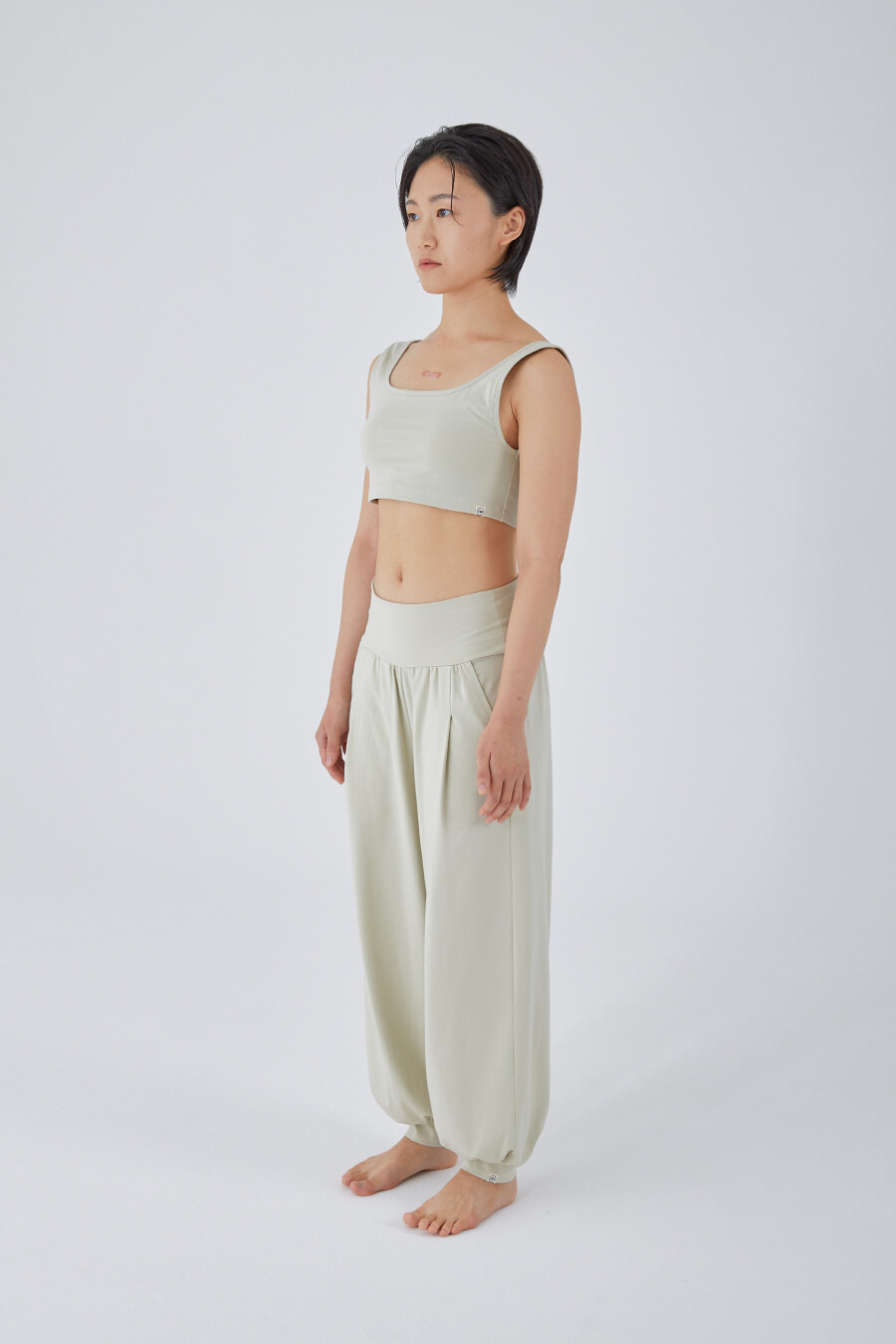 가슴 앞면은 2겹의 제원단, 1겹의 메쉬 원단으로 봉제되어 땀이 났을 때 빠르게 마를 수 있도록 통기성을 높였으며 브라 패드 탈부착이 가능합니다. 제품은 브라 패드가 포함되어 있습니다.