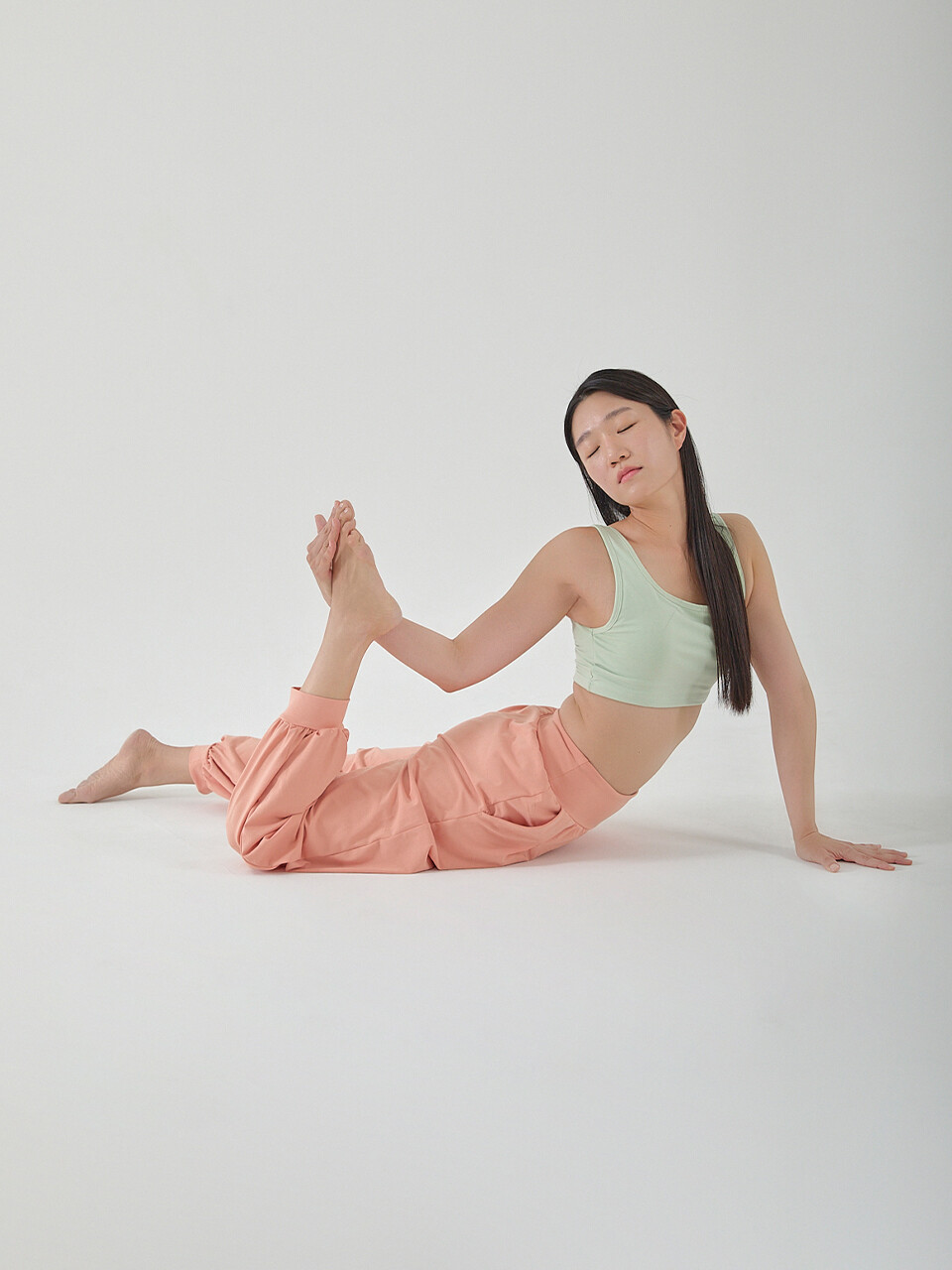 가슴 앞면은 2겹의 제원단, 1겹의 메쉬 원단으로 봉제되어 땀이 났을 때 빠르게 마를 수 있도록 통기성을 높였으며 브라 패드 탈부착이 가능합니다. 제품은 브라 패드가 포함되어 있습니다.