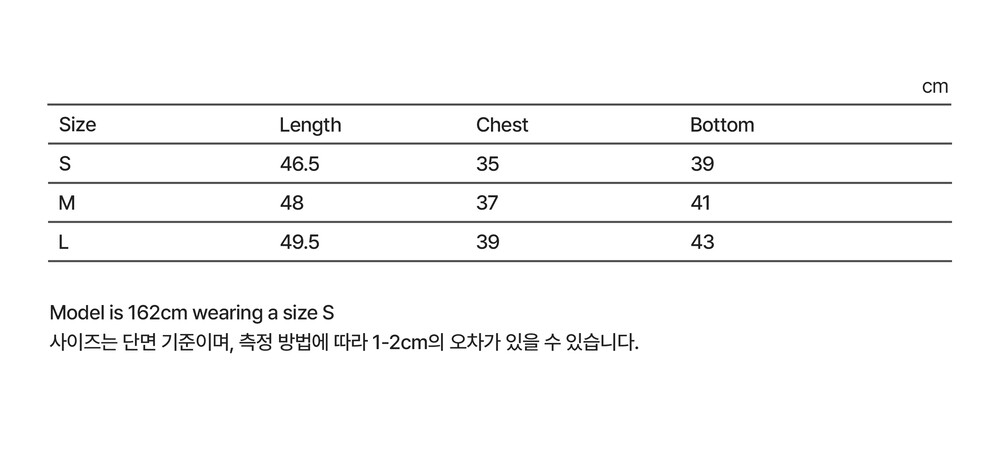 - 사이즈는 측정 방법에 따라 1-3cm가량의 오차가 발생할 수 있으며, 모니터 해상도에 따른 색상 및 질감 차이 등은 반품/교환 사유에 해당하지 않습니다.