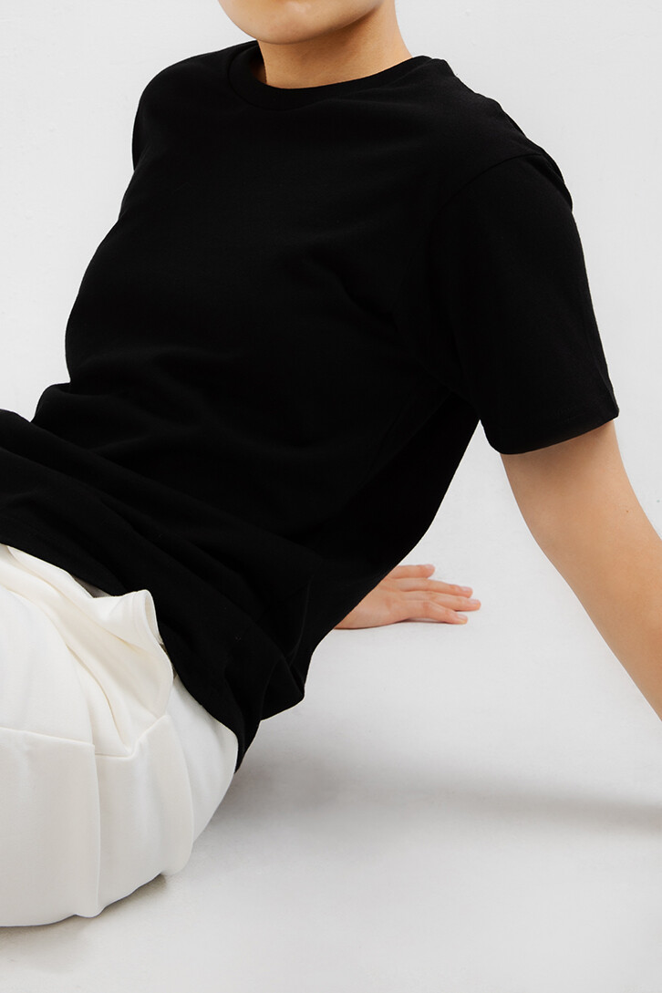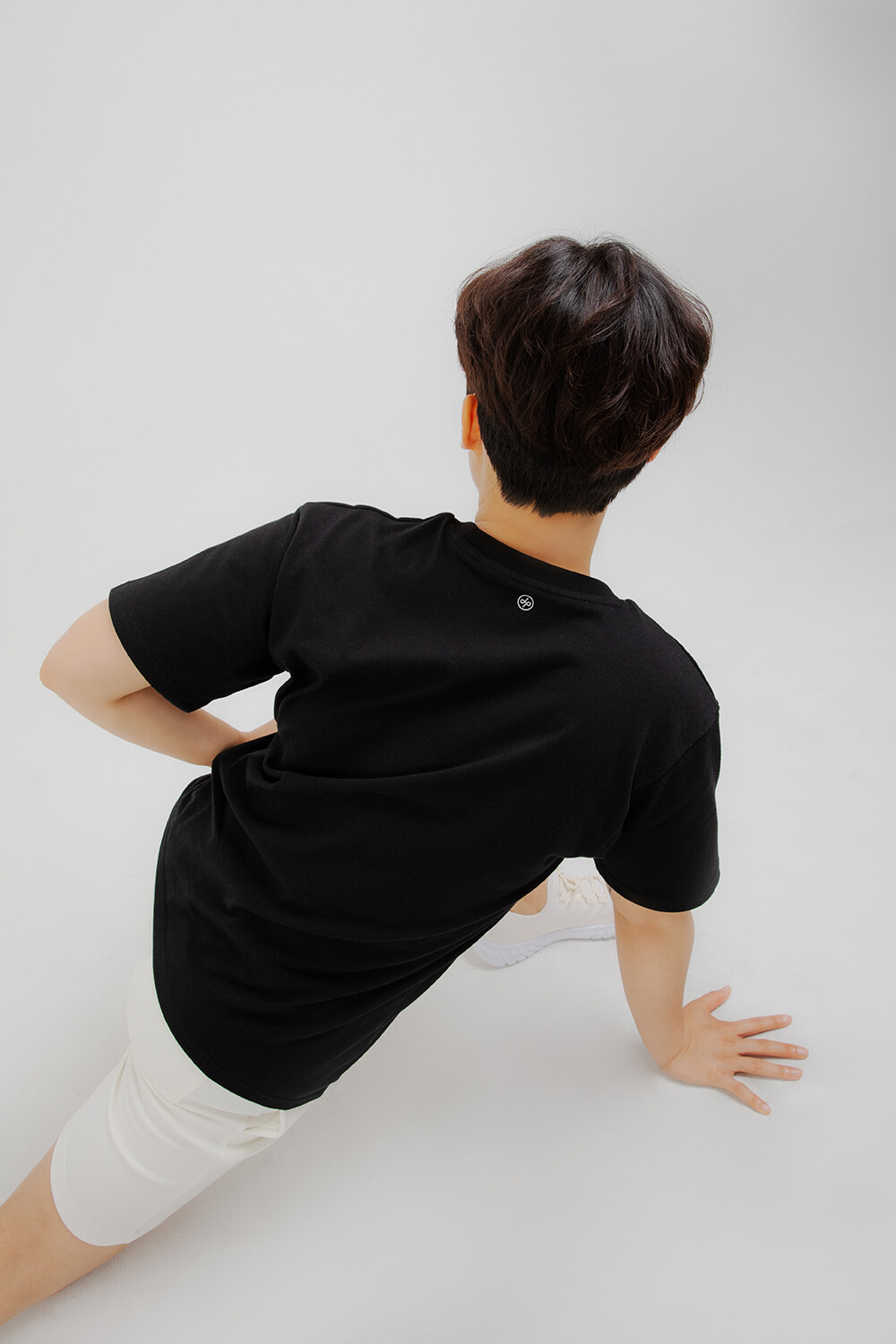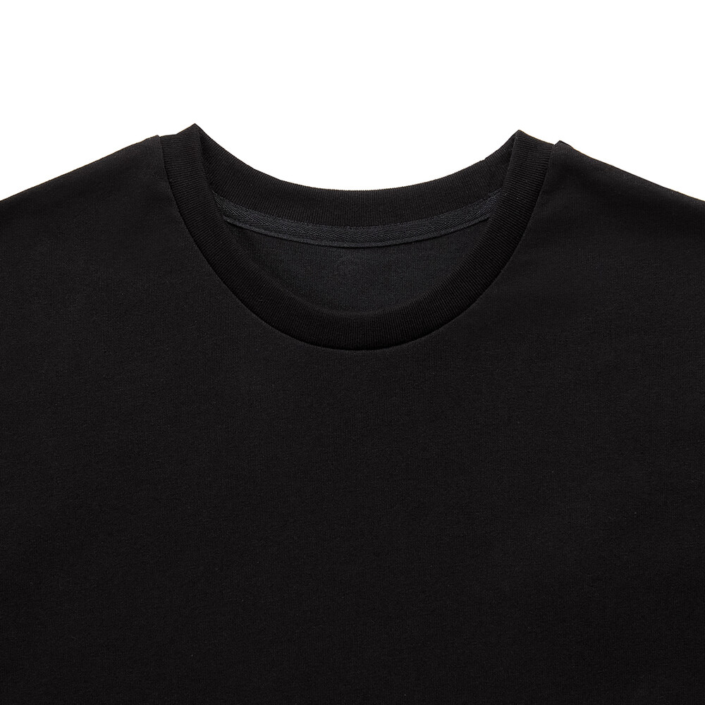 여유 있는 스탠다드 핏으로 디자인되었으며, 네크라인 내부에는 코튼 테이프 마감과 립 원단을 사용하여 목 늘어짐을 최소화하고 내구성을 높였습니다.
