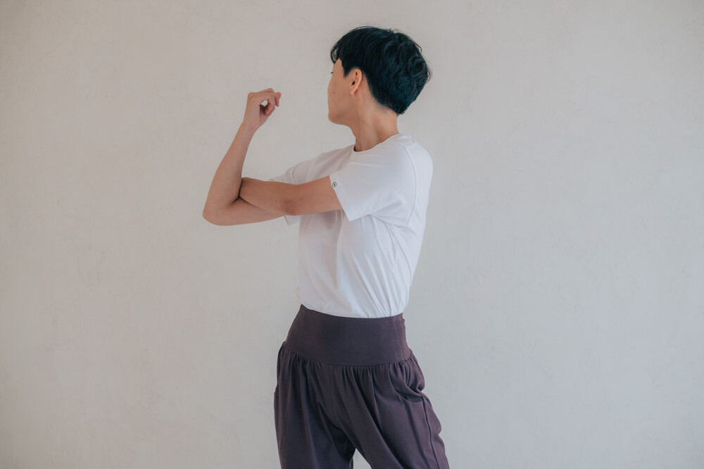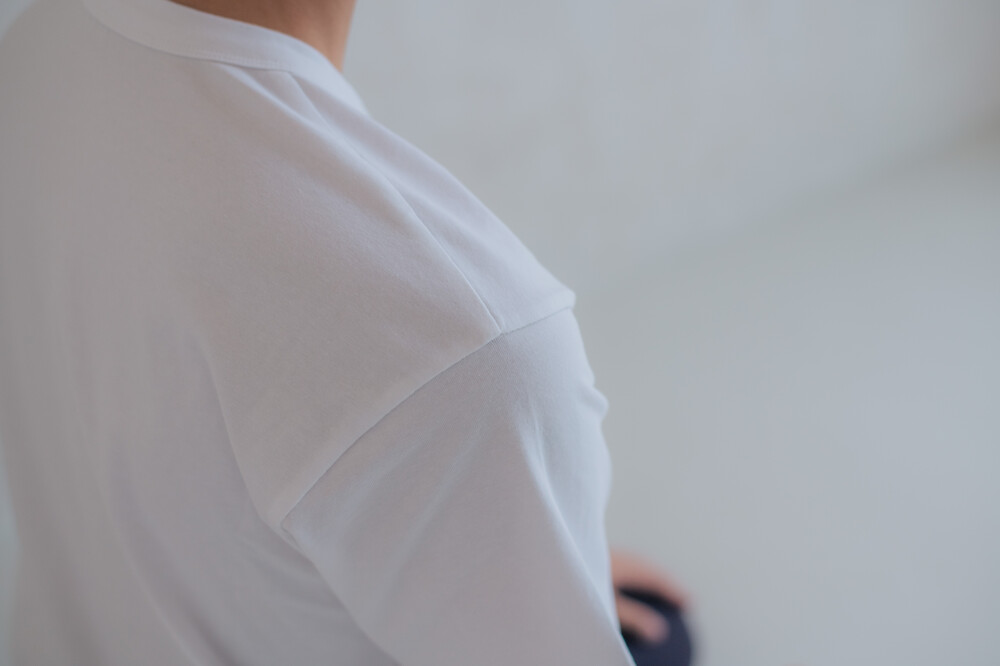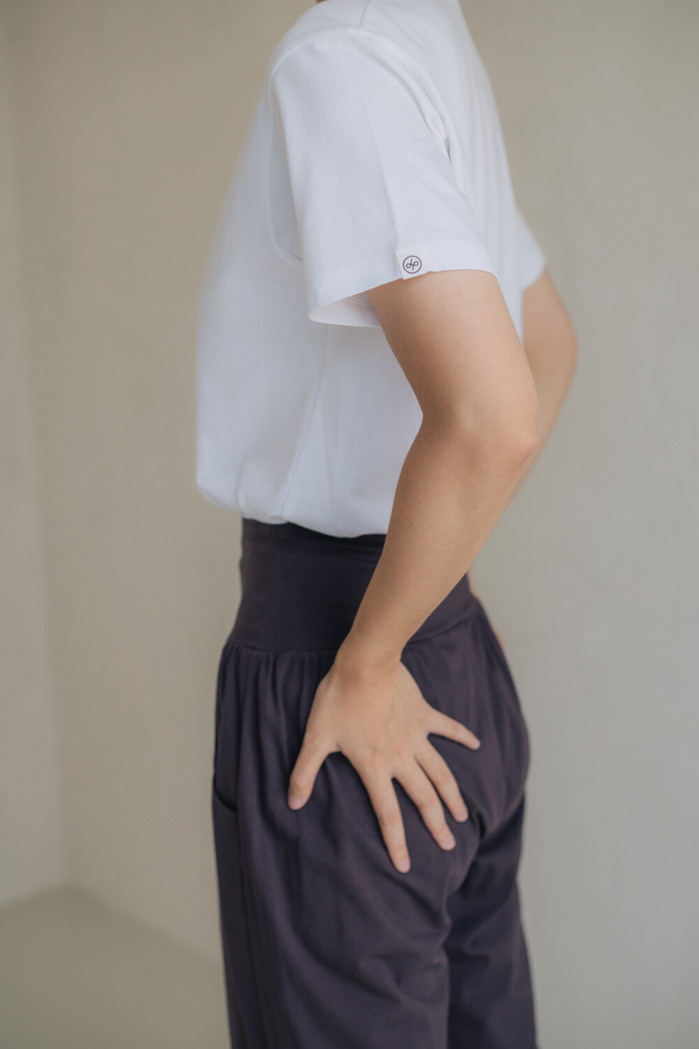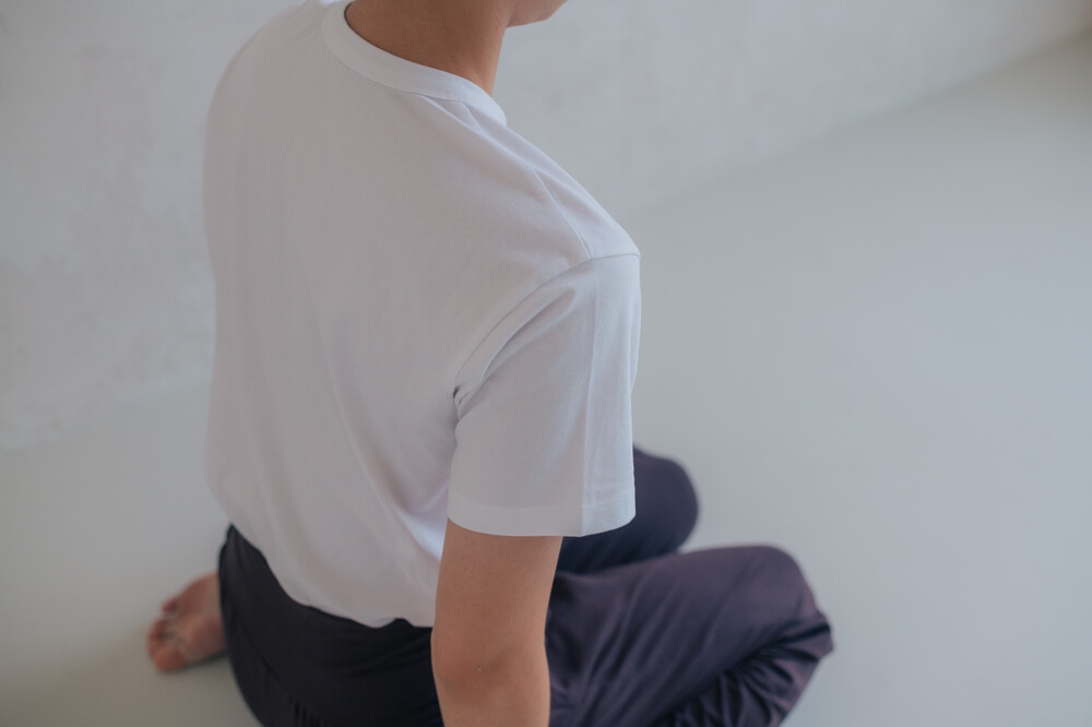 요가 수련에 최적화된 스탠다드 핏으로 디자인되었으며, 네크라인은 제 원단으로 마감해 목 늘어짐을 최소화하였습니다.