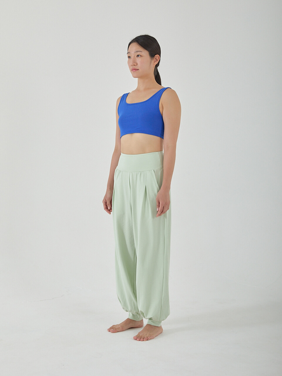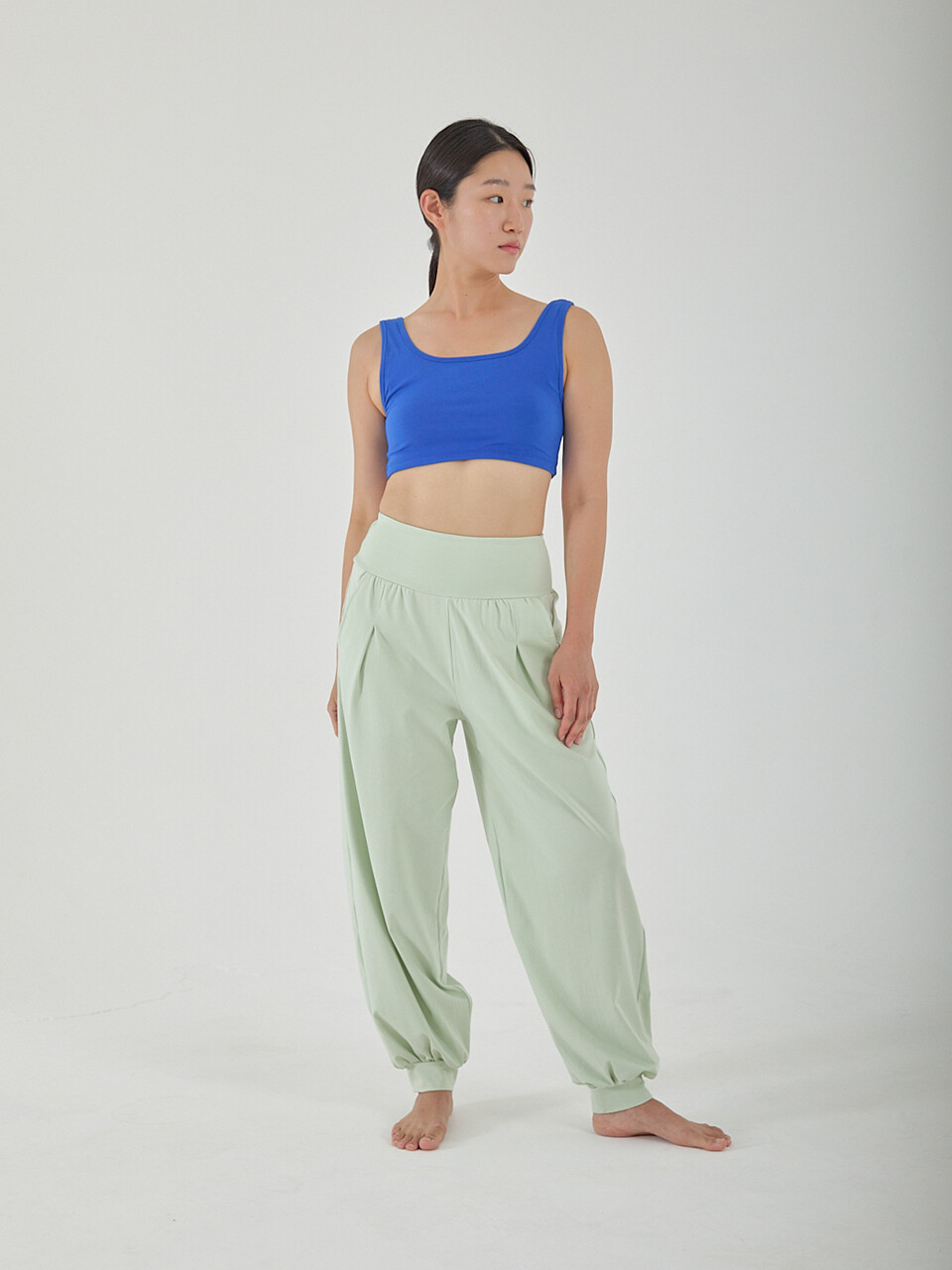 가슴 앞면은 2겹의 제원단, 1겹의 메쉬 원단으로 봉제되어 땀이 났을 때 빠르게 마를 수 있도록 통기성을 높였으며 브라 패드 탈부착이 가능합니다. 제품은 브라 패드가 포함되어 있습니다.