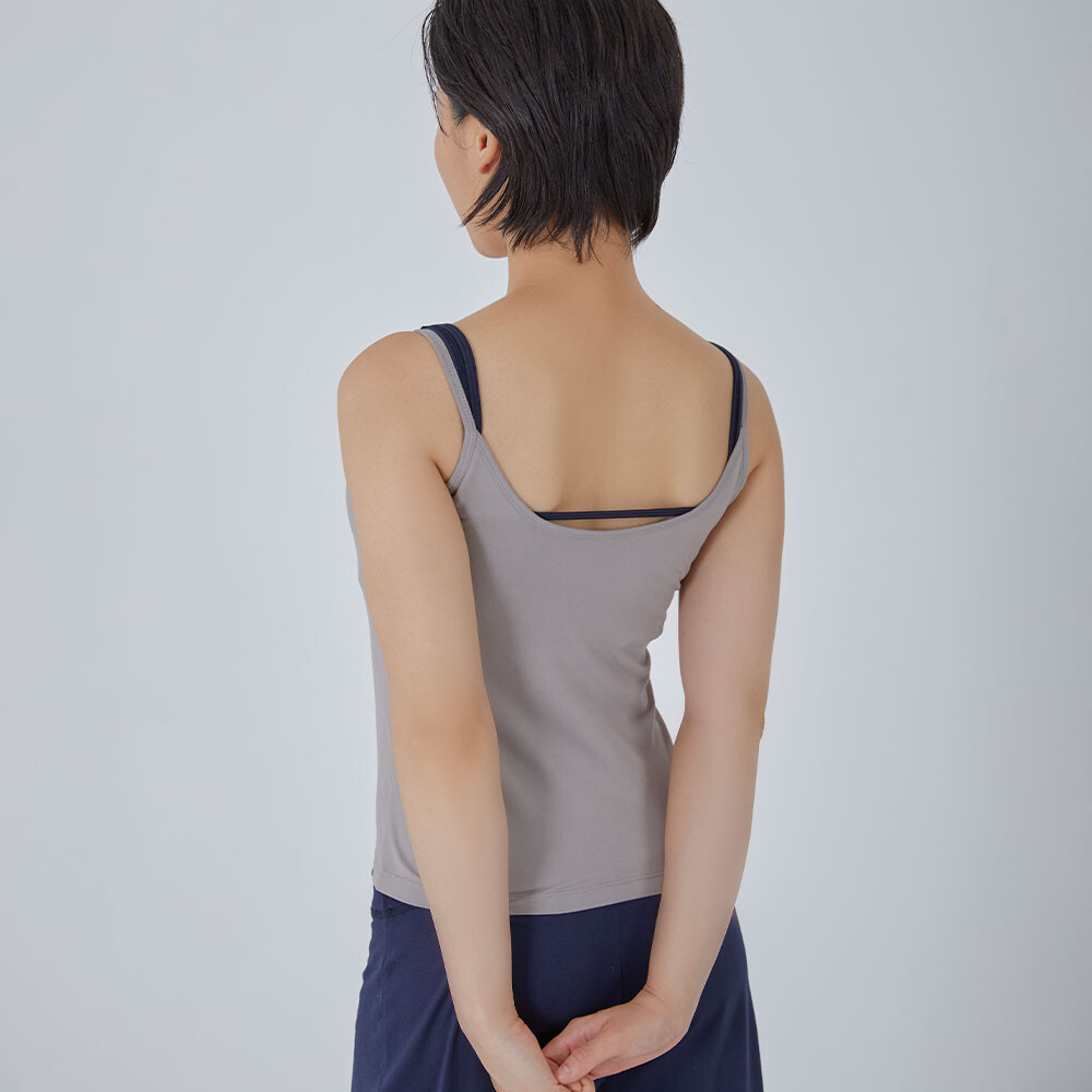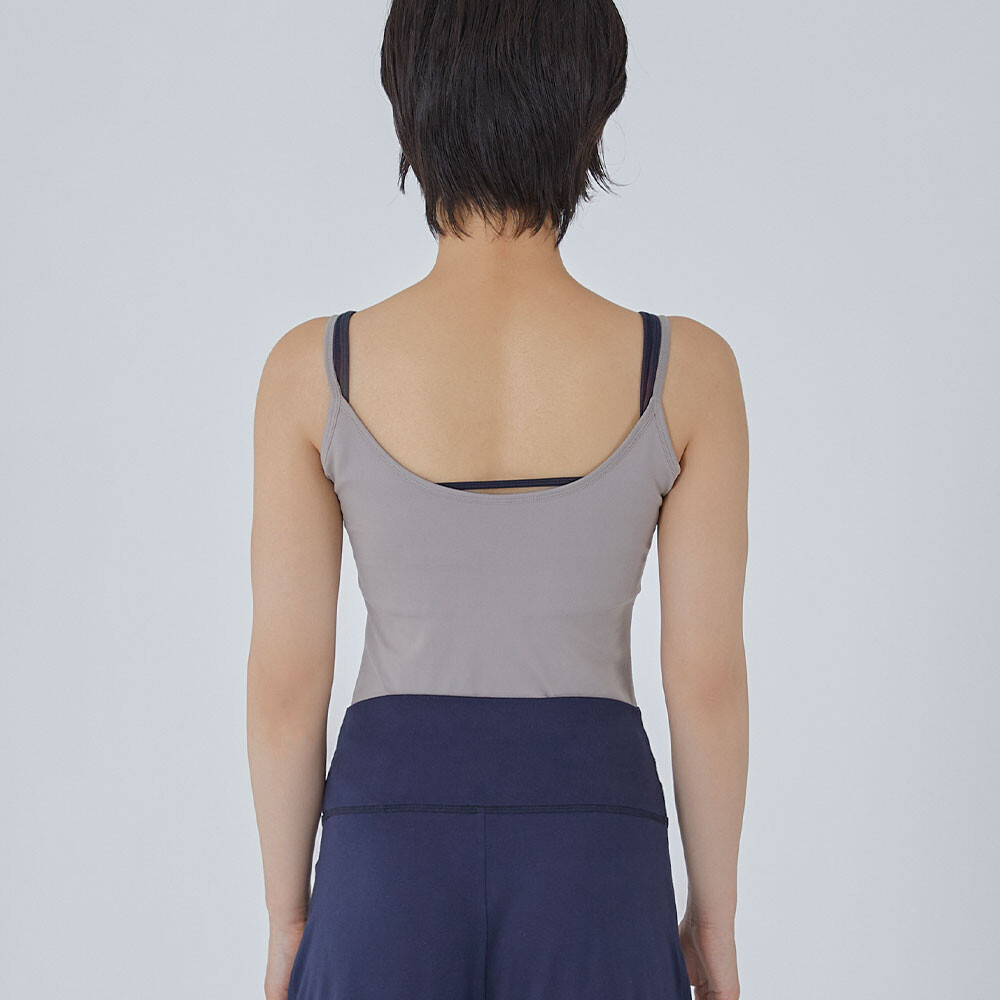 가슴 앞면은 2겹의 제원단, 1겹의 메쉬 원단으로 봉제되어 땀이 났을 때 빠르게 마를 수 있도록 통기성을 높였으며 브라 패드 탈부착이 가능합니다. 제품은 브라 패드가 포함되어 있습니다.