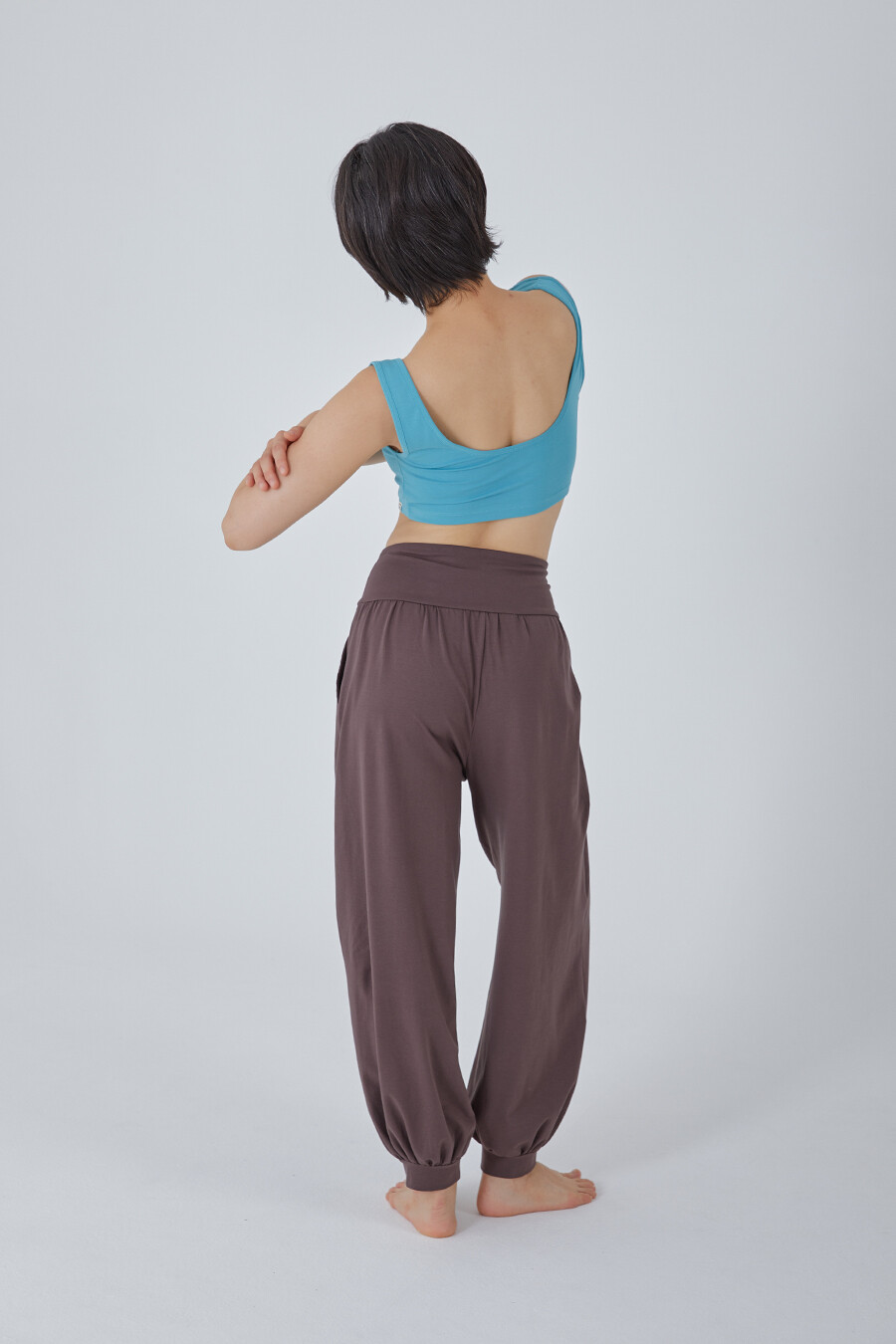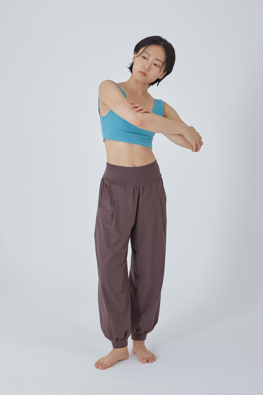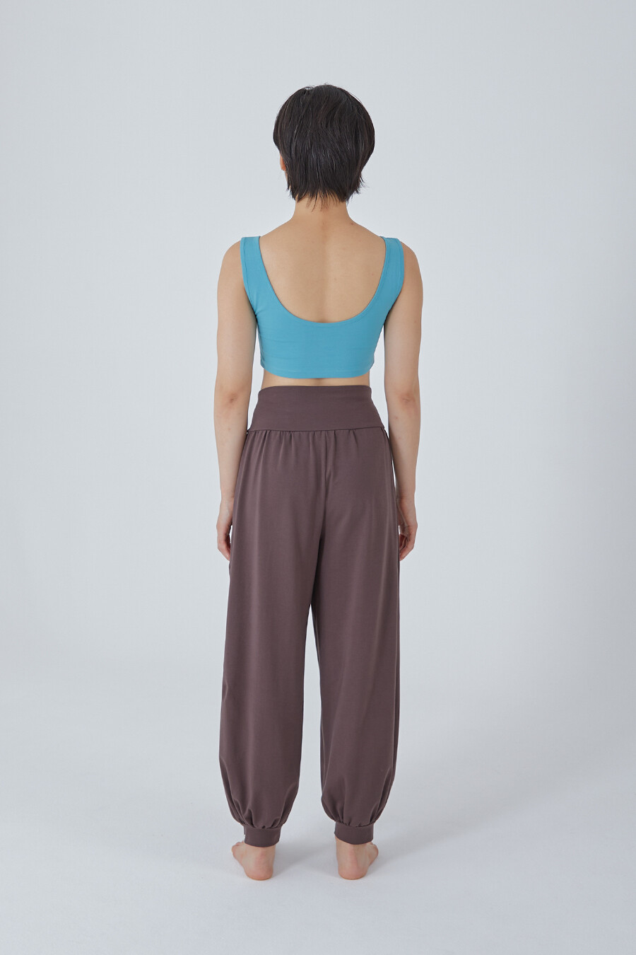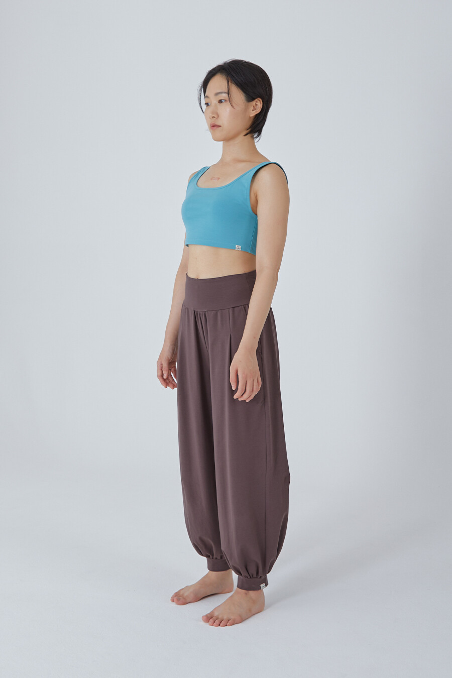 허리의 넓은 원단부는 복부를 편히 감싸고, 가장 윗부분은 얇은 밴딩으로 마감해 내구성을 더했습니다.