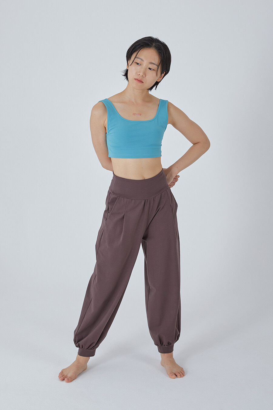 발목은 제원단 시보리로 마감했으며, 팬츠 포켓에는 물건을 수납하기 좋습니다.