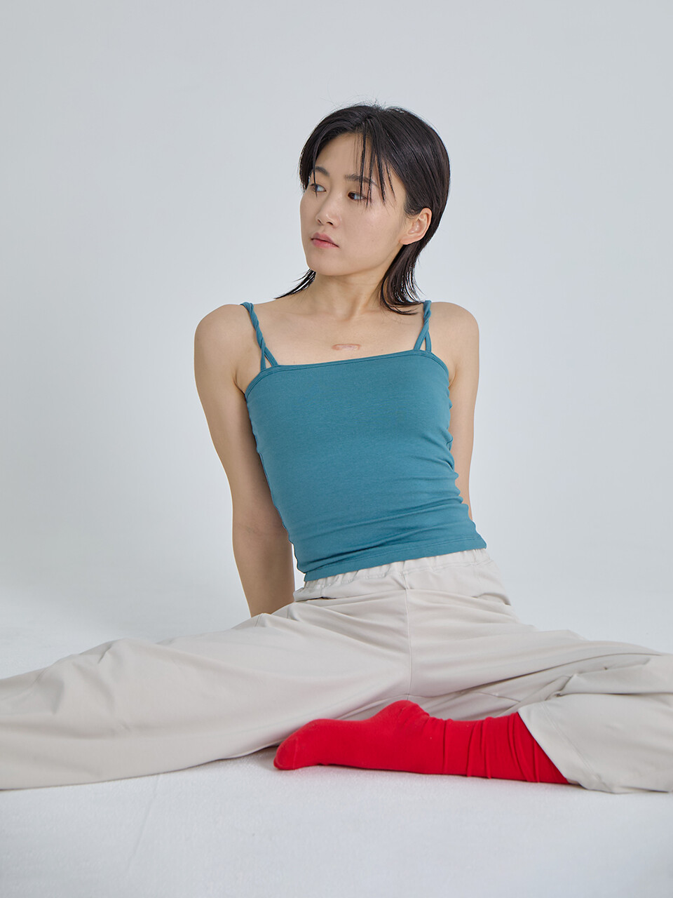 젓가락 두 쌍을 연상케 하는 두줄 어깨끈이 포인트인 탱크톱입니다.